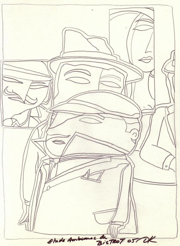 Etude à la mine de plomb sur papier, pour "Ambiance de bistrot"