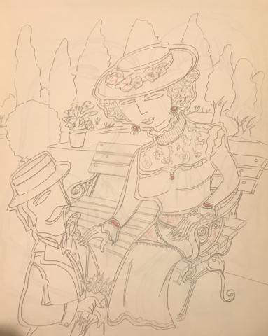 Etude à la mine de plomb sur papier, pour "La demande"