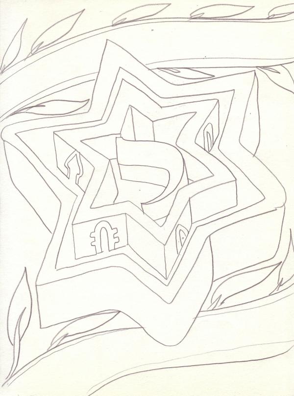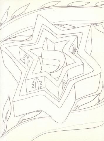 Etude à la mine de plomb sur papier, pour "Tsion Yerushalaim"