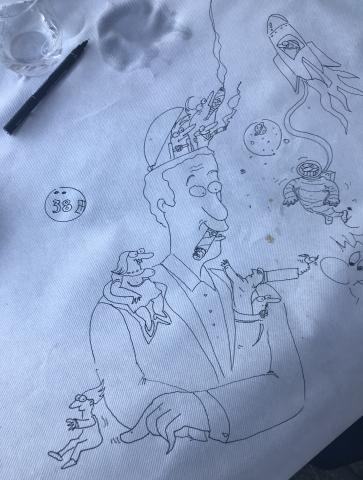 Un dîner trop poivré (sur une nappe en tissu à la demande du restaurateur)