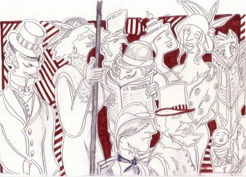 Etude, à la mine de plomb sur papier, pour "Dans le métro"