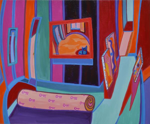 Une toile accrochée. J’ai cru que c’était un miroir mais non ! Puisque je l’ai signée…