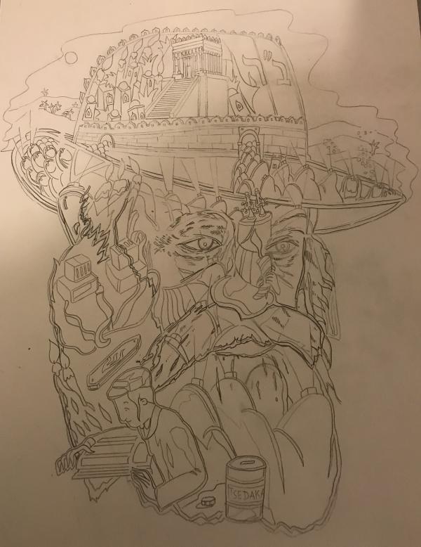 Etude à la mine de plomb sur papier, "Portrait de Rav Schneerson"