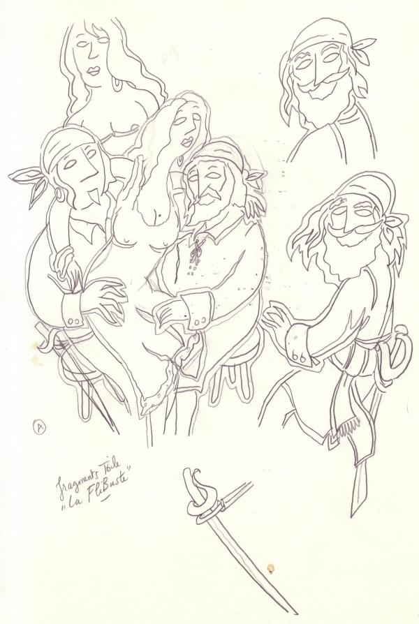 Etude à la mine de plomb sur papier, pour "La flibuste" 1
