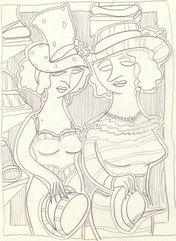 Etude à la mine de plomb sur papier, pour "Le Chapelier"