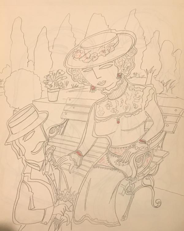 Etude à la mine de plomb sur papier, pour "Rendez-vous buccolique"