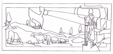 Etude 1 pour panneaux en peinture vitrale pour la Synagogue de Champigny-France